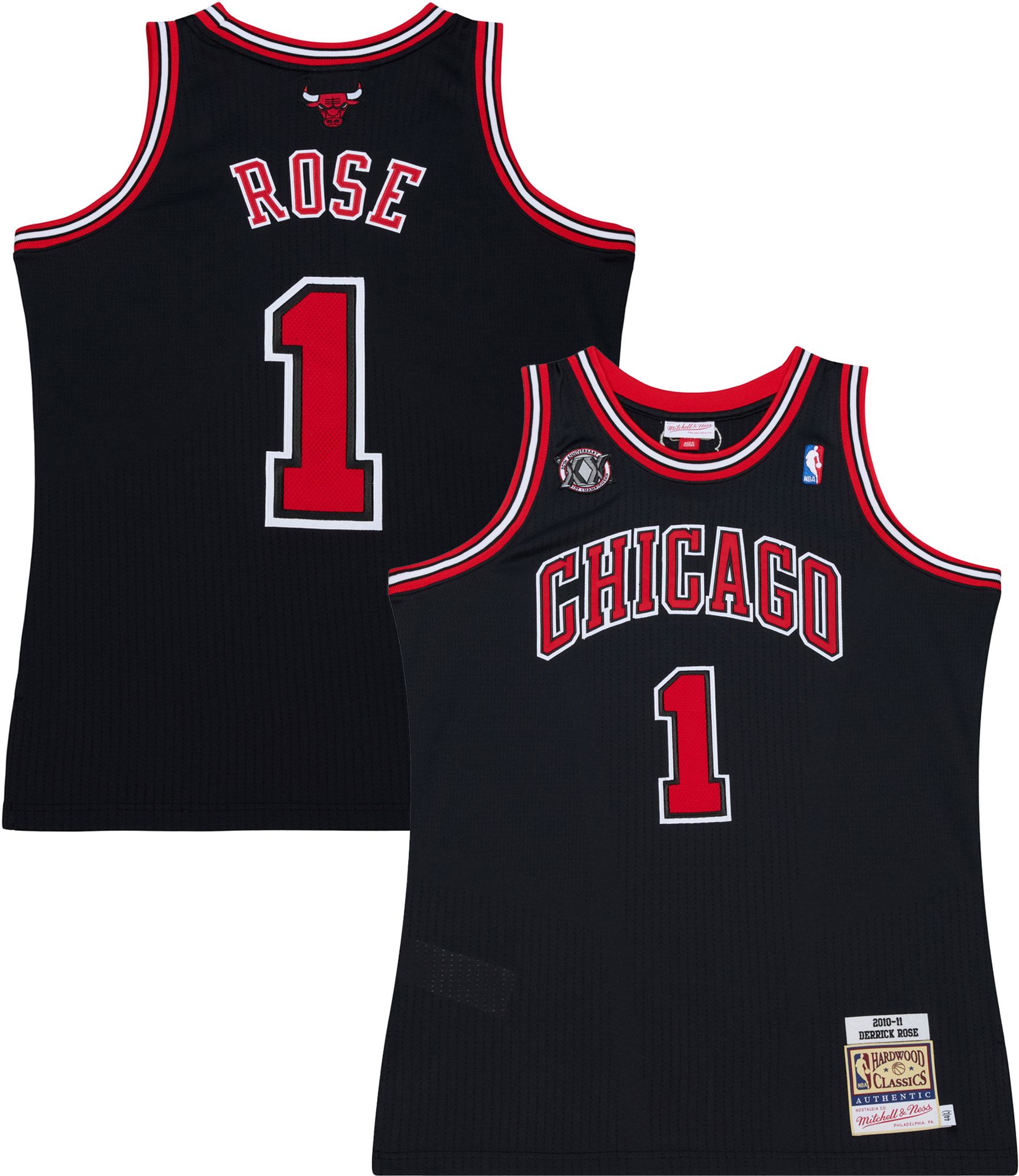 Mitchell & Ness Adult Chicago Bulls Derrick Rose #1 Black Hardwood Classic 2010 Authentic Jersey
