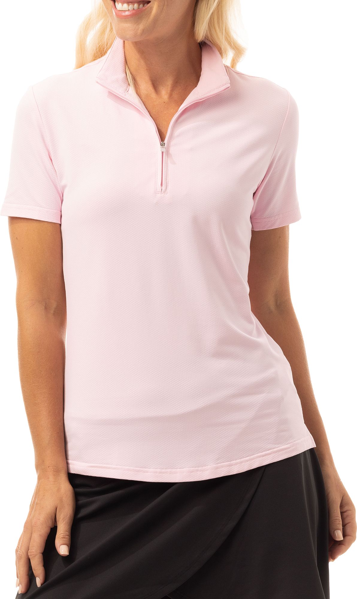 SanSoleil Women's SolTek Mock Neck Short Sleeve Golf Polo