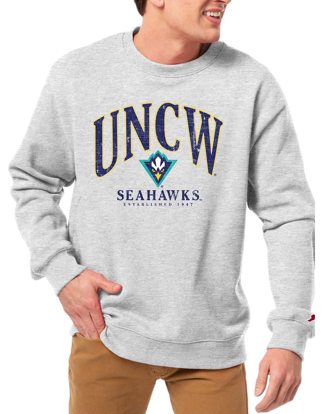 League-Legacy Men's UNC-Wilmington Seahawks Grey Essential 2.0 Fleece Crew Neck Sweatshirt