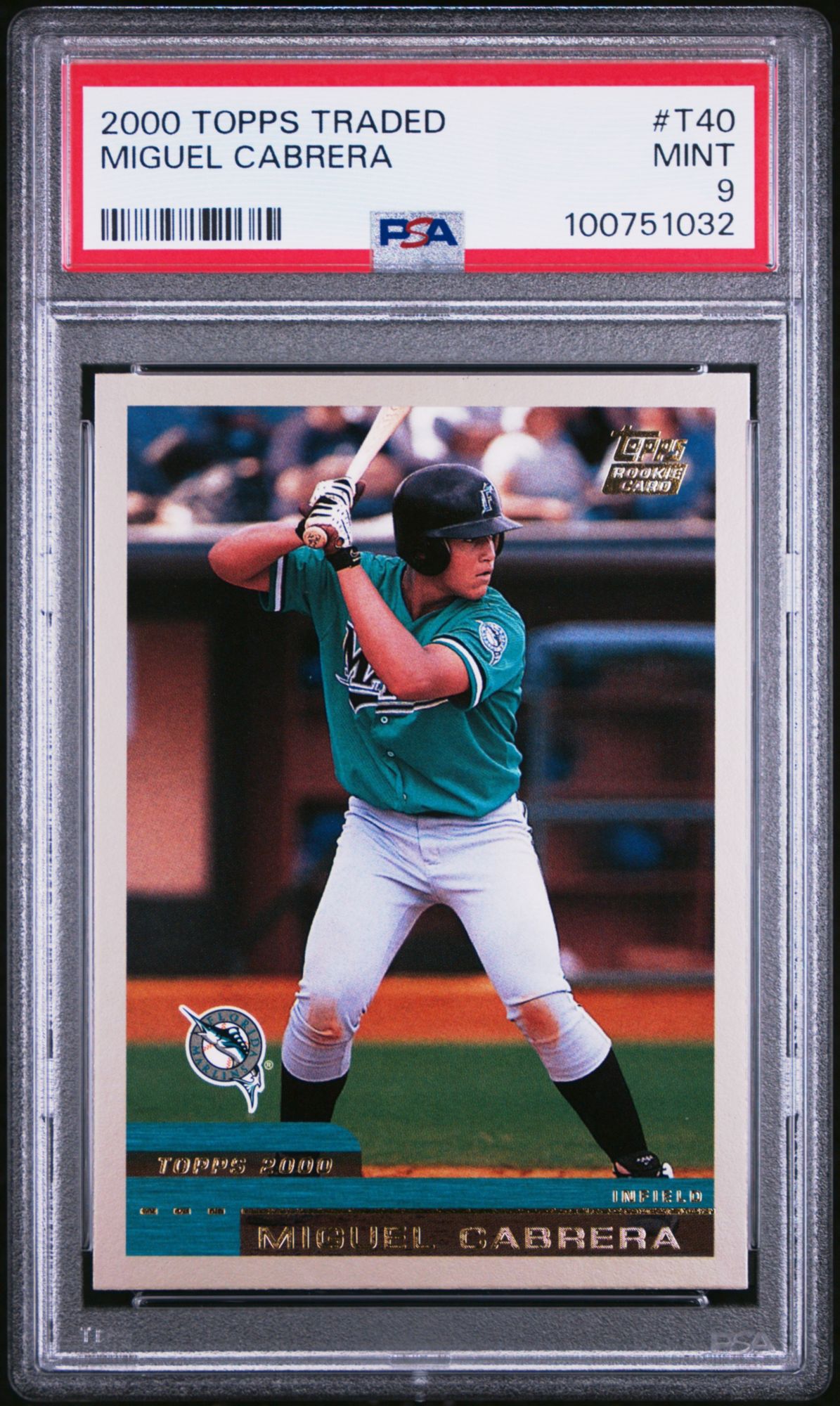 A PSA Mint 9 is a superb condition card that exhibits only one of the following minor flaws: a very slight wax stain on reverse, a minor printing imperfection or slightly off white borders. Centering must be approximately 60/40 or better on the front and 90/10 or better on the reverse