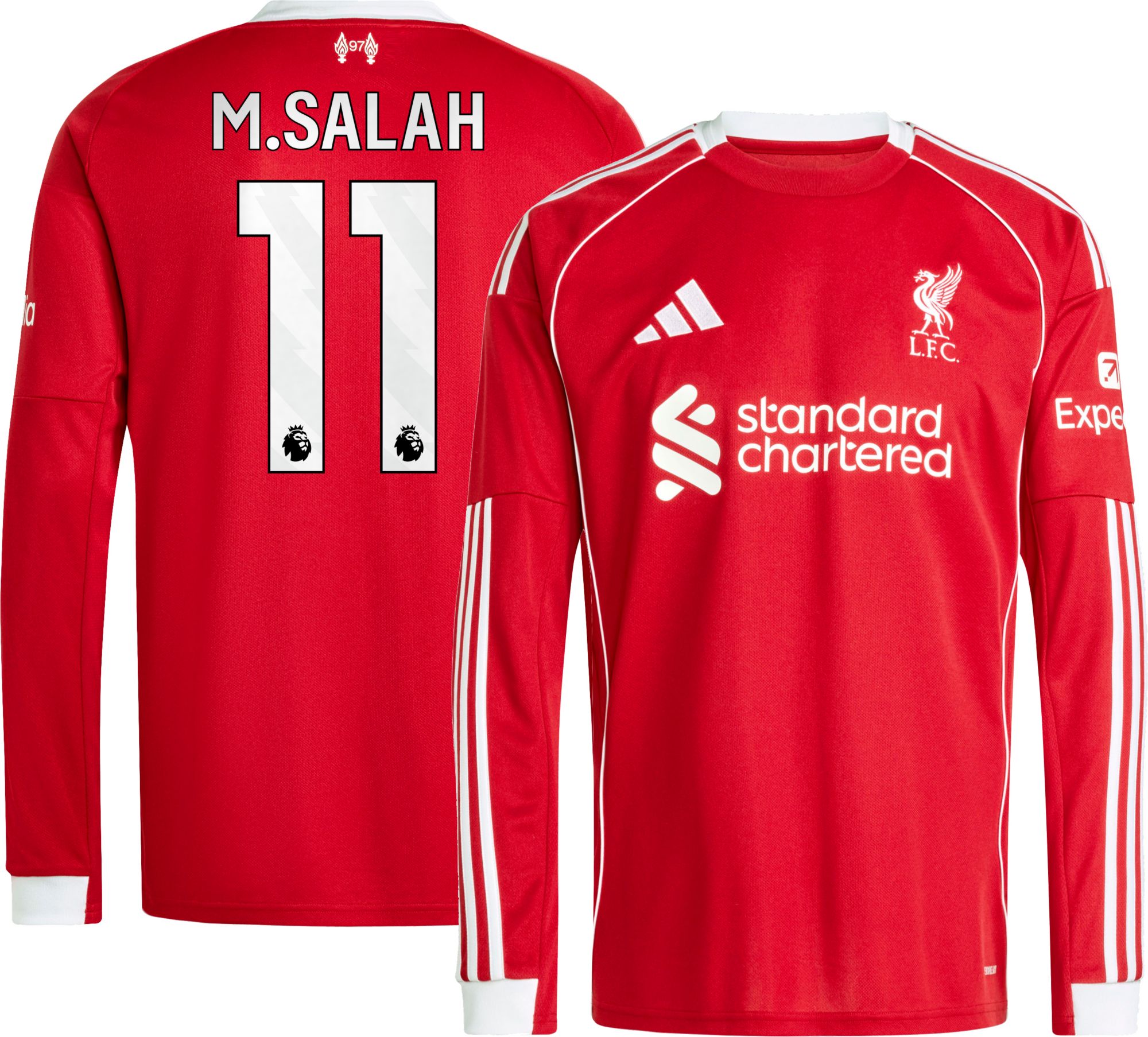 adidas Adult Liverpool FC Mohamed Salah #11 2025 Red Home Long Sleeve Replica Jersey