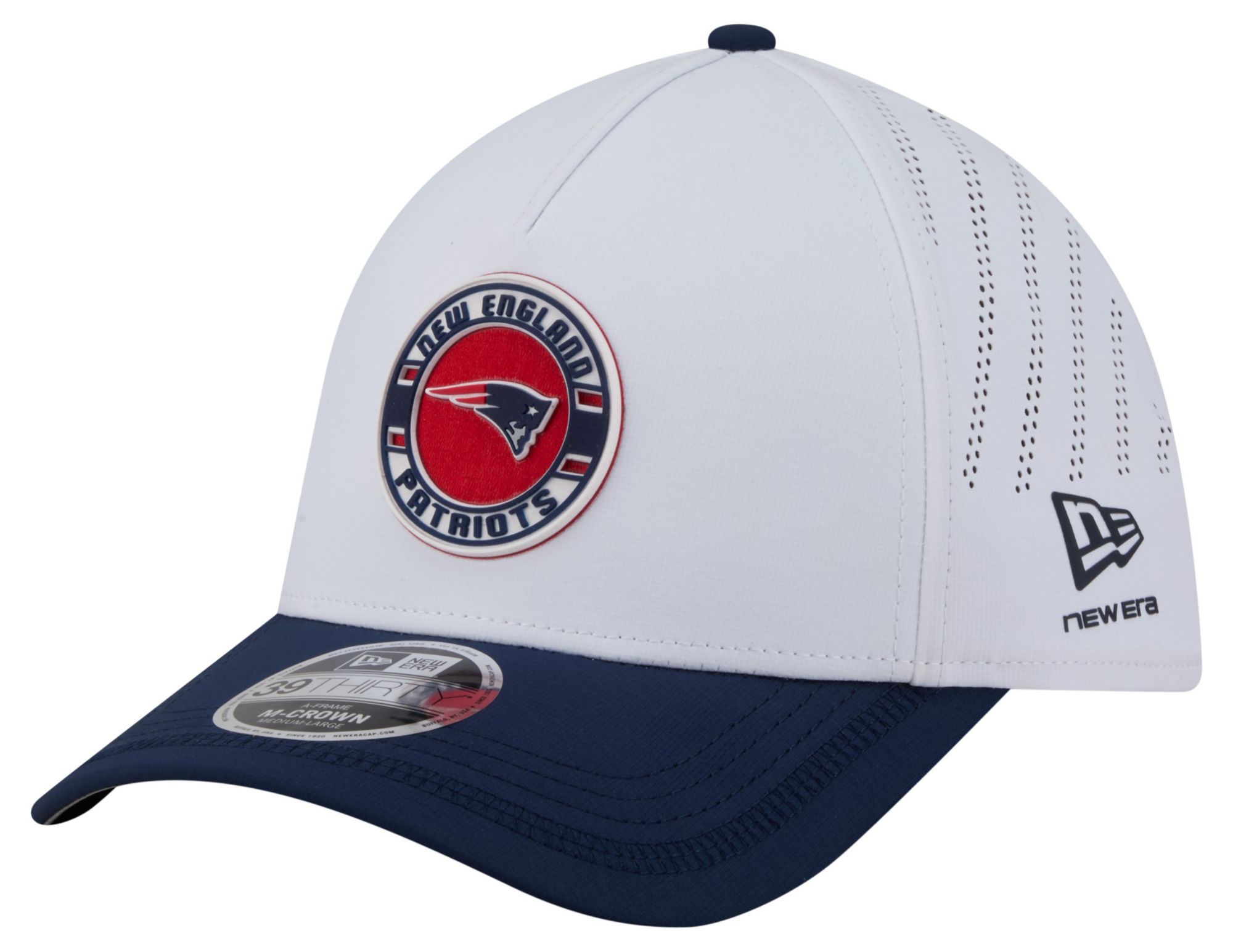 New Era Adult New England Patriots White A-Frame Patch 39Thirty Stretch Fit Hat